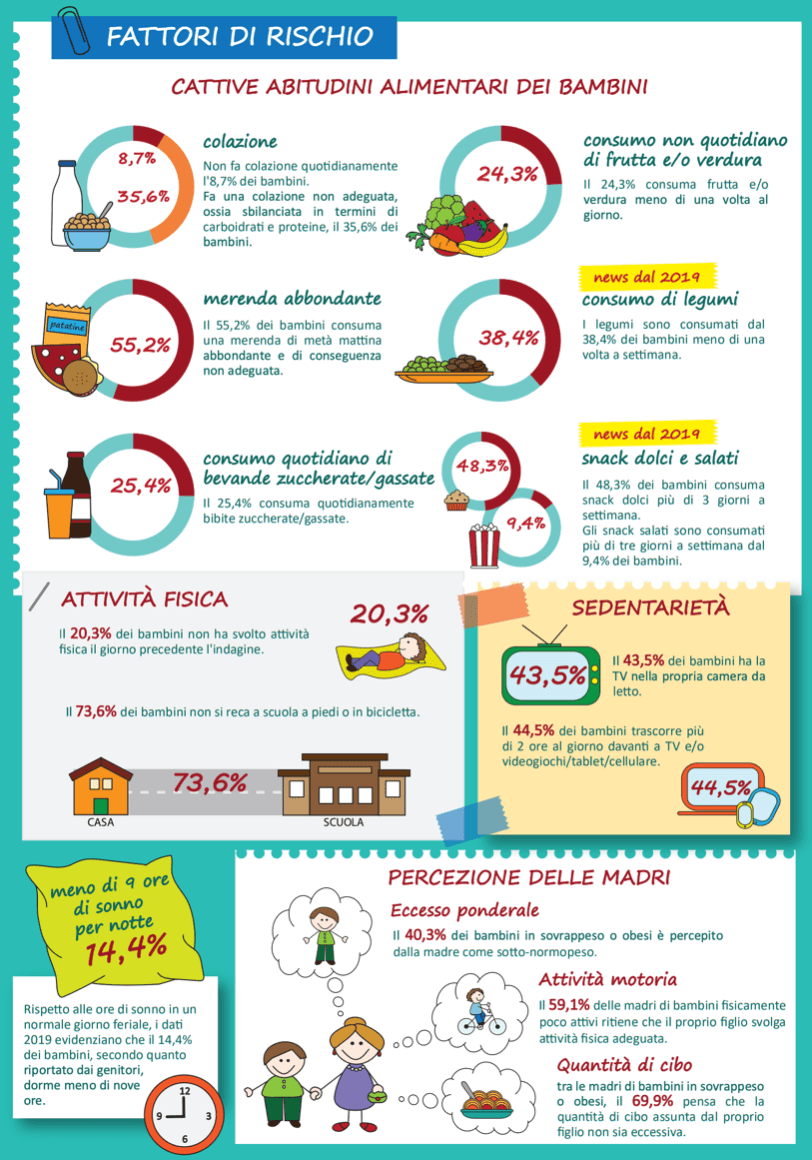 Infografica degli ultimi dati (risultati 2019) di OKkio alla Salute pubblicata dal Ministero della Salute