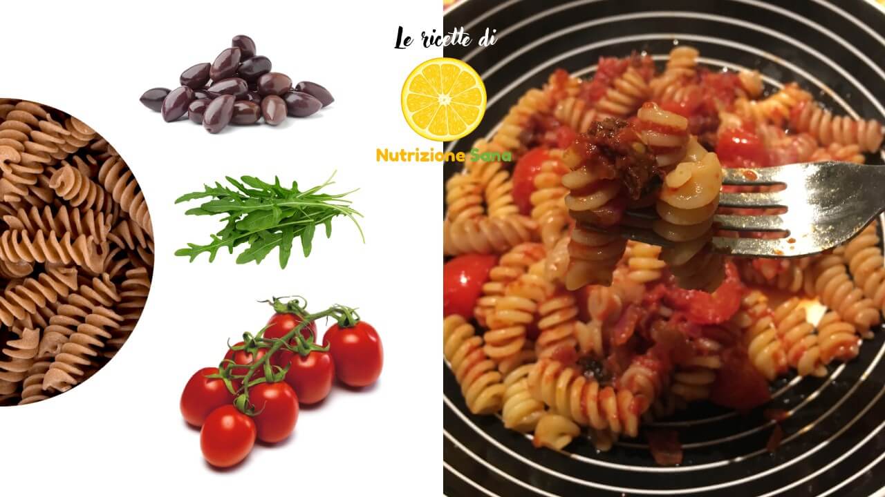 Questa pasta ben su sposa con un condimento di sugo di pomodorini leggero e insaporita da olive, rucola e le scaglie di parmigiano a fine cottura; perfetta anche come pranzo da portare per la pausa pranzo lavorativa.
