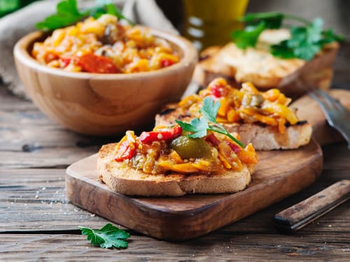É un’alternativa sana e deliziosa alla cucina tradizionale. Le tartine si formano da una base di pane tostato, ricoperto da una cremosa di ceci e verdure fresche di stagione. Questo piatto non solo offre un tocco creativo alla solita cucina natalizia, ma è anche un’opzione eccellente per chi si rivolge a ospiti vegetariani o vegani. L’hummus di ceci fornisce una base ricca e sostanziosa, perfetta per bilanciare la leggera croccantezza delle verdure.